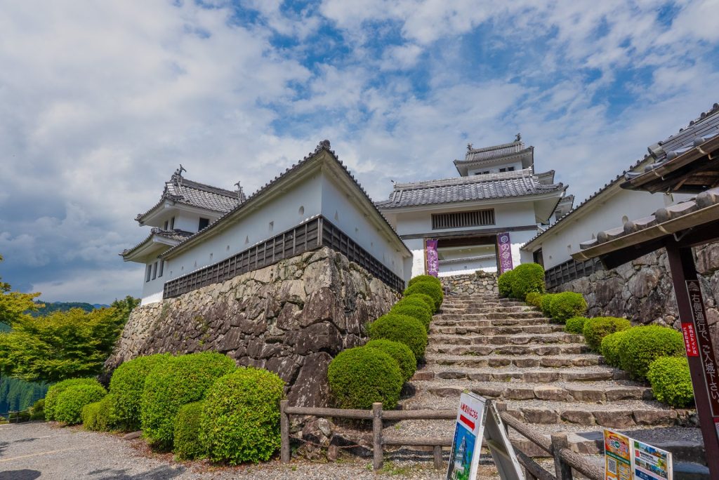 - 山頂に佇む天守は「日本最古の木造再建城」。