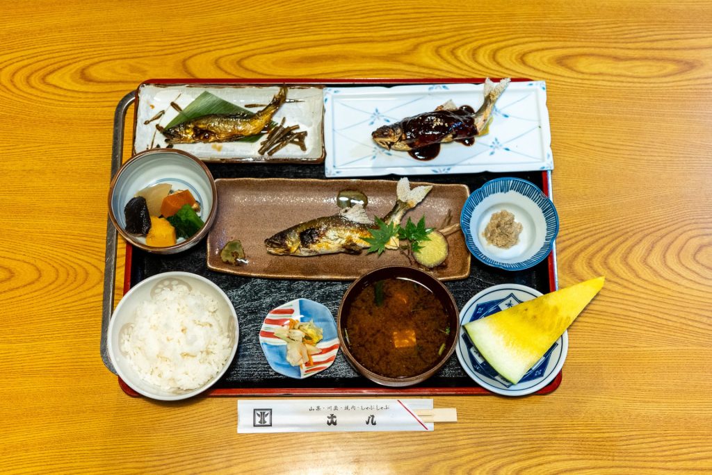 香ばしい香りが広がる中、頭から尻尾まで味わう郡上ならではの一尾を堪能。