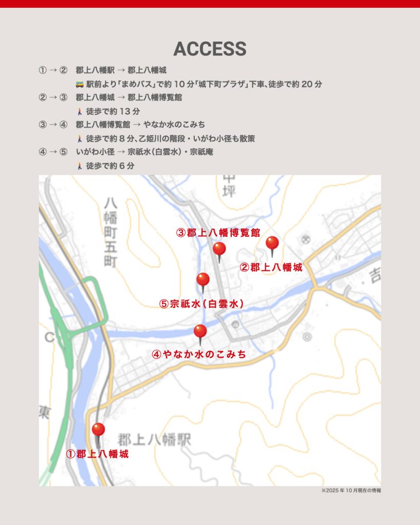 城から始まり、町並み、水辺、そして旬の味覚まで──五感で感じる郡上をめぐります。