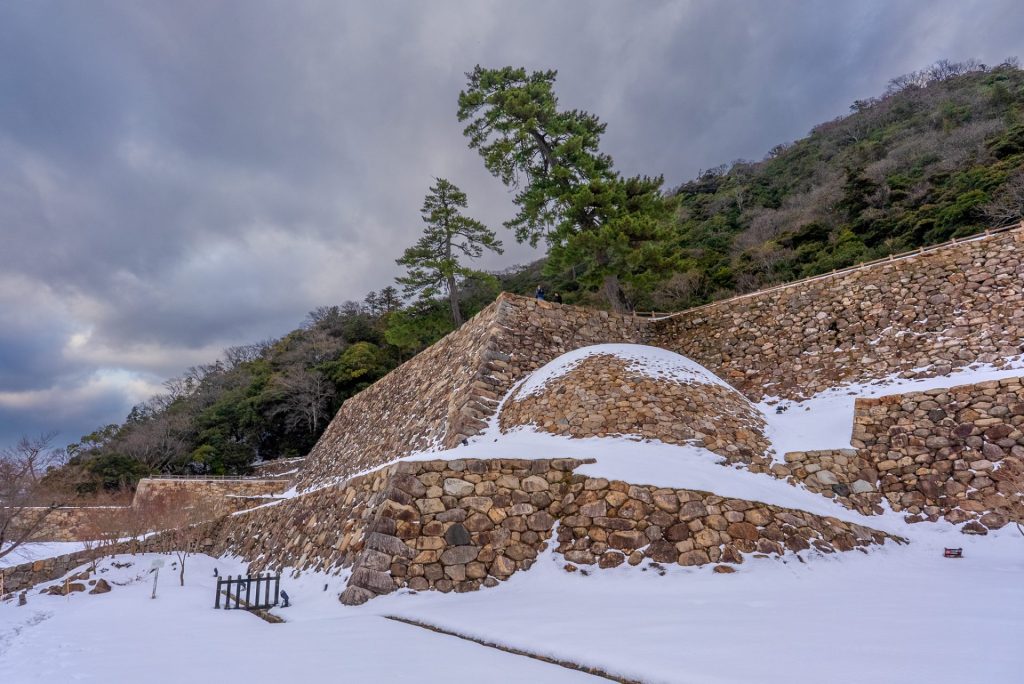 崩落を防ぐために築かれた珍しい『巻石垣』。その独特なフォルムは、過酷な歴史を経てなお、この城を守り抜こうとした後世の人々の想いのようにも見える。
